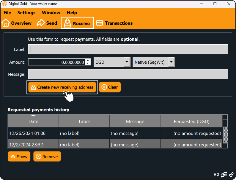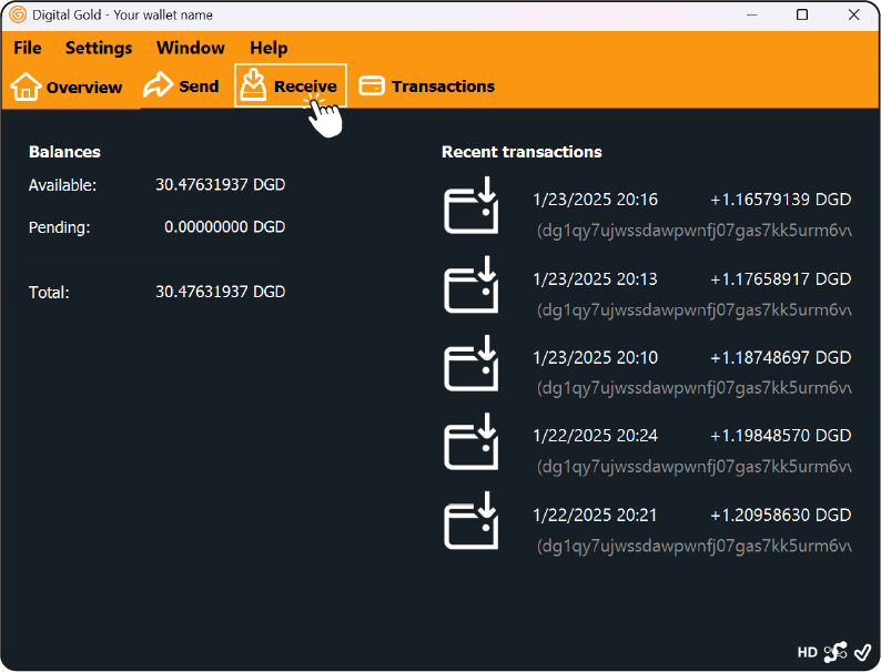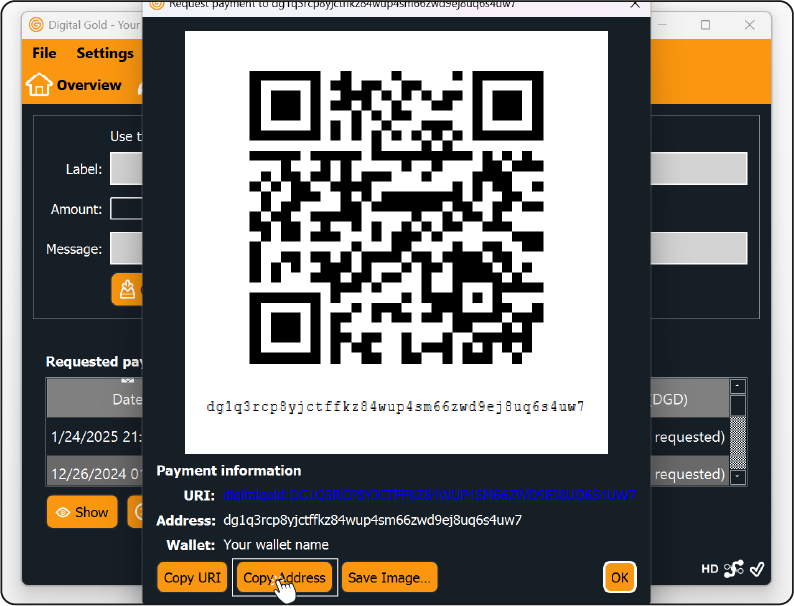 Get a Digital Gold Deposit Address